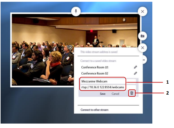 - In the resulting dialog, you can edit the video stream\'s name or URL, or you can delete the video stream.