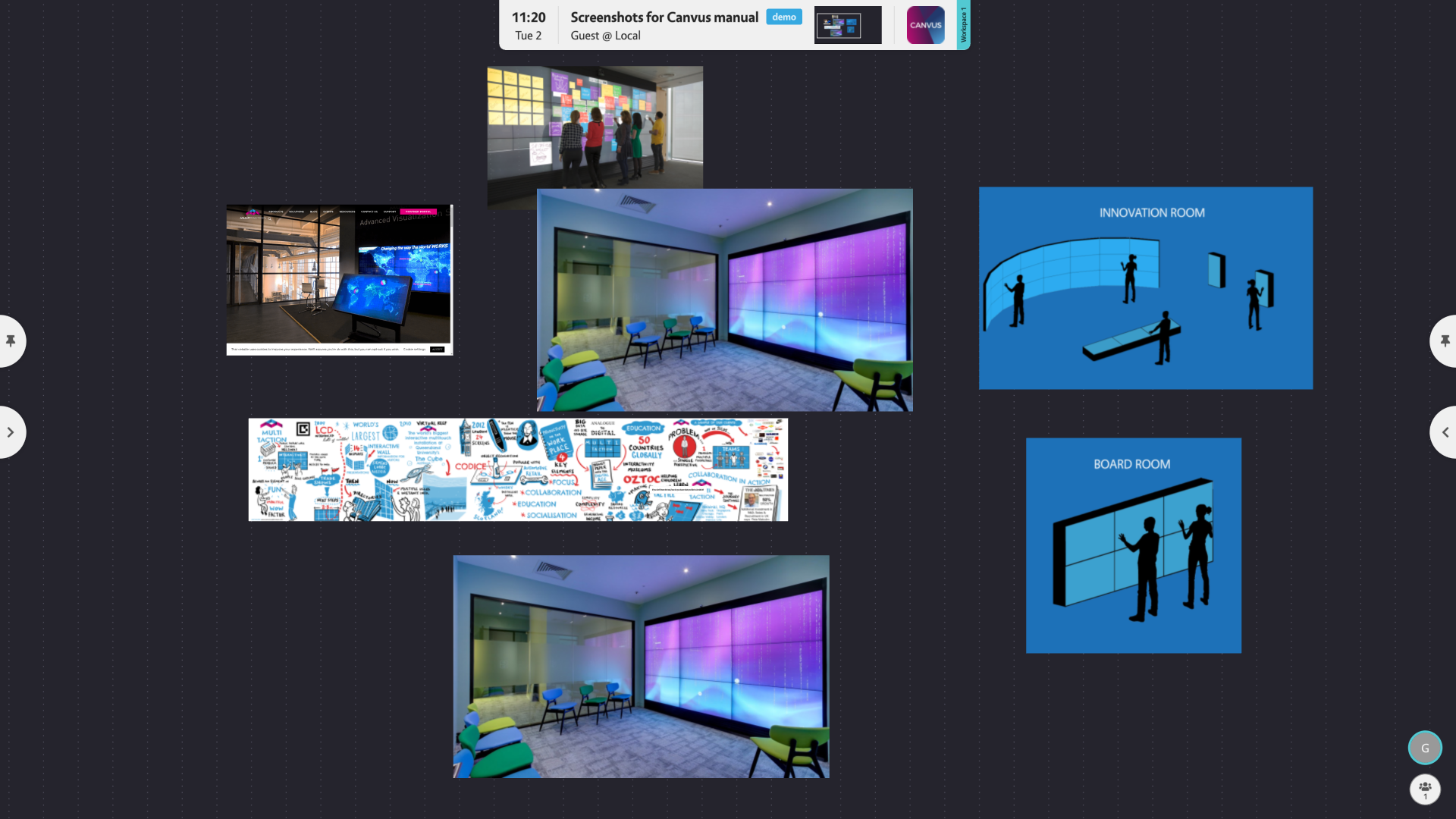 - Shared canvases are saved on the Canvus Connect server and are available to any Canvus client with a connection to the server. This allows remote users in multiple locations to view and interact with the same shared canvas concurrently.